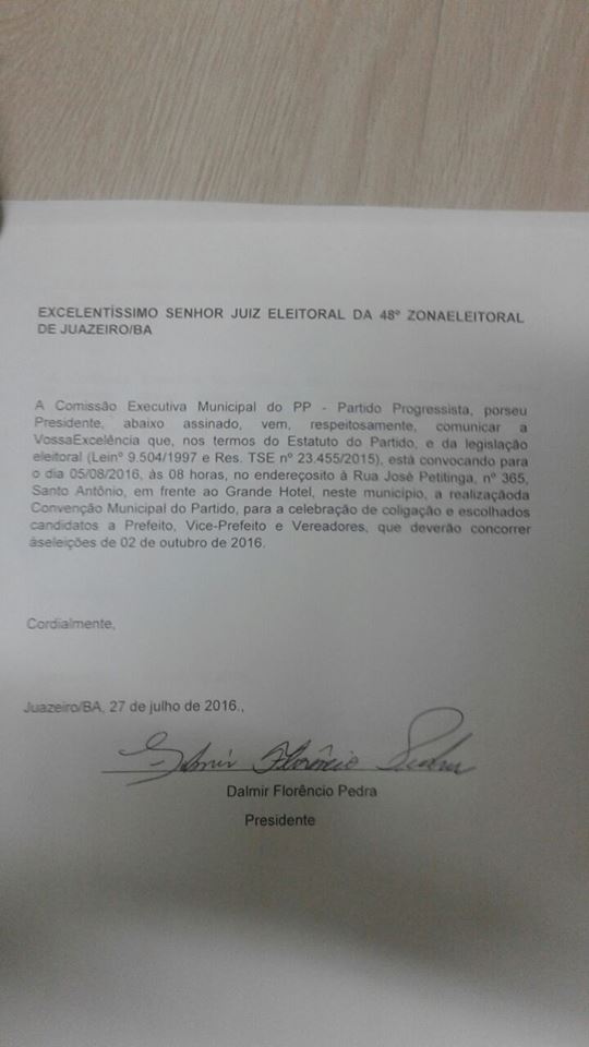 Juazeiro (BA): Convenção do PP será dia 05 de agosto