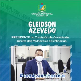 O vereador Gleidson Azevedo vai presidir a, Comissão de juventude, Direito das Mulheres e das Minorias. uma das mais relevantes da Câmara de Juazeiro. Foram escolhidos, para vice-presidente, a vereadora Valdeci Alves da Cruz, Raimundo Nonato trindade Dos Santos( Mundeco) para relator e os vereadores Salvador Carvalho e Lourival Quirino, membros.