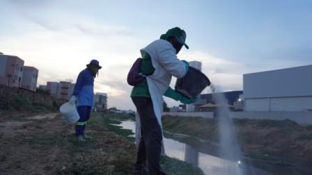 “O produto utilizado é o Óxido de Cálcio – conhecido como cal – que é aplicado logo após a limpeza dos canais. Ele elimina as larvas que geram insetos, criando um ambiente estéril para reprodução de mosquitos. Por ser um produto biodegradável, não agride o meio ambiente e está nos ajudando a controlar esses insetos. Paralelo a isto, a prefeitura vem estudando formas de revitalizar os riachos da cidade e dando prosseguimento ao trabalho de implantação de esgotamento sanitário onde ainda não tem, para sanar de vez os esgotos que temos em Juazeiro”, frisou a diretora-presidente do SAAE, Josilene Alixandre.