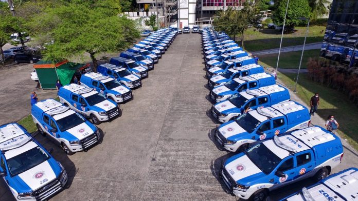 O governador Rui Costa entregou mais 49 viaturas para a Polícia Militar da Bahia (PMBA), ampliando a frota da corporação, nesta segunda-feira (27/09). Ele anunciou também a blindagem dos veículos da PM baiana e a convocação de mais 1,7 mil policiais militares aprovados no último concurso. A entrega e os anúncios foram realizados em evento na Secretaria da Segurança Pública (SSP), com a presença do secretário da pasta, Ricardo Mandarino, do comandante-geral da PM, coronel Paulo Coutinho, e da delegada-geral da Polícia Civil, Heloísa Brito.