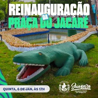 A Prefeitura de Juazeiro, através da Secretaria de Obras e Desenvolvimento Urbano (Sedur), vai reinaugurar nesta quinta-feira (06/01), às 17h, a obra de requalificação da Praça Coronel Aprígio Duarte, mais conhecida como Praça do Jacaré. A intervenção realizada promoveu uma reestruturação completa e mudança no ambiente urbano da área central da cidade, garantindo à população um espaço digno para convivência.