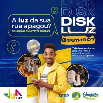 Primando pela qualidade dos serviços de iluminação pública em toda a cidade, a Prefeitura de Juazeiro, através da Secretaria de Serviços Públicos (SESP), a partir desta terça-feira (01/02) disponibiliza para a população, o Programa ‘Disk Luz’. Inédito na cidade, a iniciativa contará com um sistema mais rápido e mais abrangente para resolver as demandas da população e melhorar a iluminação pública do município.