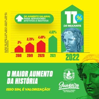 De acordo com a prefeita Suzana Ramos, o aumento salarial inédito de 11% é reflexo do compromisso e capacidade da gestão. “Implantamos uma política de valorização do servidor, que é o nosso maior patrimônio e são eles que fazem essa cidade crescer. Valorizar o servidor é fundamental para que ele possa desempenhar bem as suas atribuições, atendendo bem e com humanização o nosso povo e assim contribuir para o desenvolvimento do município. Esse maior reajuste da história é a prova do compromisso e responsabilidade que temos com nossos servidores”, enfatizou a gestora.