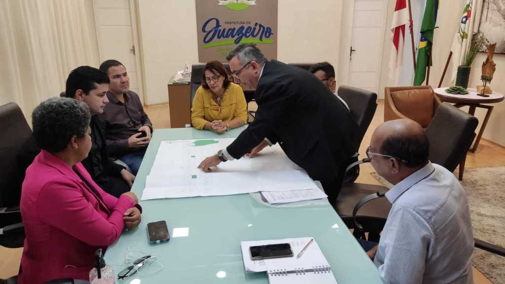 A prefeita Suzana Ramos se reuniu em seu gabinete, nesta terça-feira (26/07), com empresários do ‘Cidade luz na grande Juazeiro’, projeto que visa criar um bairro planejado próximo ao distrito de Massaroca com parque aquático e, segundo a equipe responsável, o local ganhará a maior escultura de Cristo do mundo, que será produzida pelo escultor Ranilson Viana.