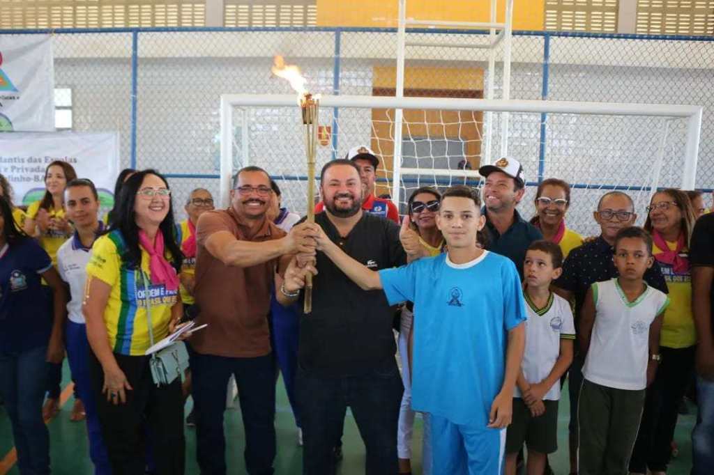 O gestor municipal recebeu a tocha olímpica das mãos de um estudante, e deu o ponta pé inicial do torneio, que contou com dez disputas entre os estudantes atletas das escolas públicas do município.