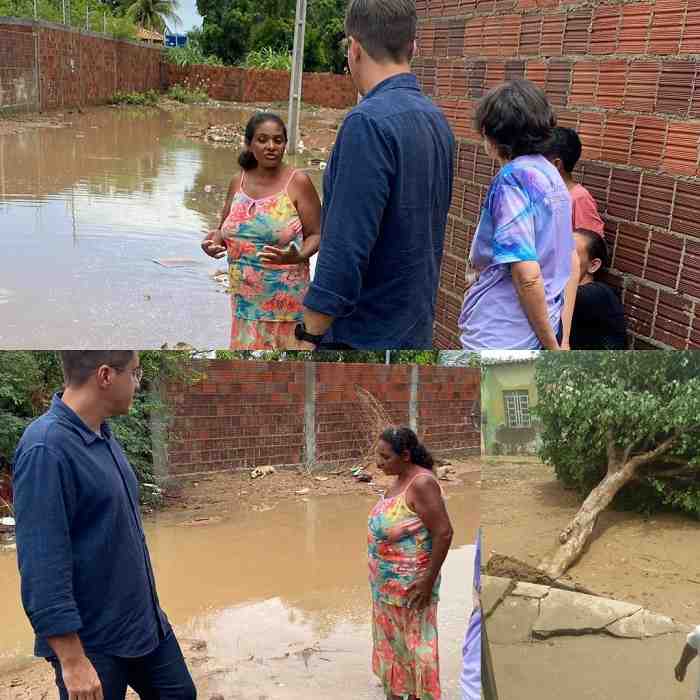 “Após as chuvas que caíram em Juazeiro, na madrugada deste dia 03 de novembro, constatamos situações complicadas para muitas famílias residentes nas quadras 25, 26 e 27 do João Paulo II; Na Rua 15 do Antônio Guilhermino e na rua 04 da Vila Nova Fé. É uma situação que se repete a cada chuva sem que o poder público tome uma providência”, disse Dr. Salvador.