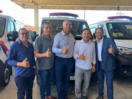 O deputado Roberto Carlos entregou uma nova ambulância para Ourolândia, graças à emenda parlamentar de sua autoria, durante a cerimônia no Parque de Exposições da Bahia, em Salvador, ao lado do governador Jerônimo Rodrigues, da secretária de Saúde Roberta Santana, do prefeito de Ourolândia, Zé do Povo, e do pré-candidato a vereador, Abenor, que celebraram a conquista.