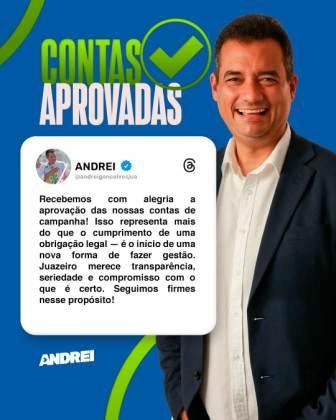 “A nossa campanha foi conduzida com seriedade, transparência e agora, com as contas aprovadas, reafirmamos nosso compromisso com uma gestão ética e responsável. Esse é apenas o começo de uma nova forma de governar, pautada pela integridade e pelo respeito ao cidadão juazeirense”, destacou Andrei.
