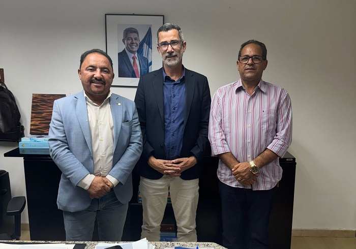 O deputado estadual Roberto Carlos promoveu uma audiência com o presidente da Embasa, Gildeone Almeida, para tratar da ampliação do abastecimento de água no município de Ourolândia. A reunião contou com a presença do líder político Abenor Cardoso, que representou o prefeito Zé do Povo.