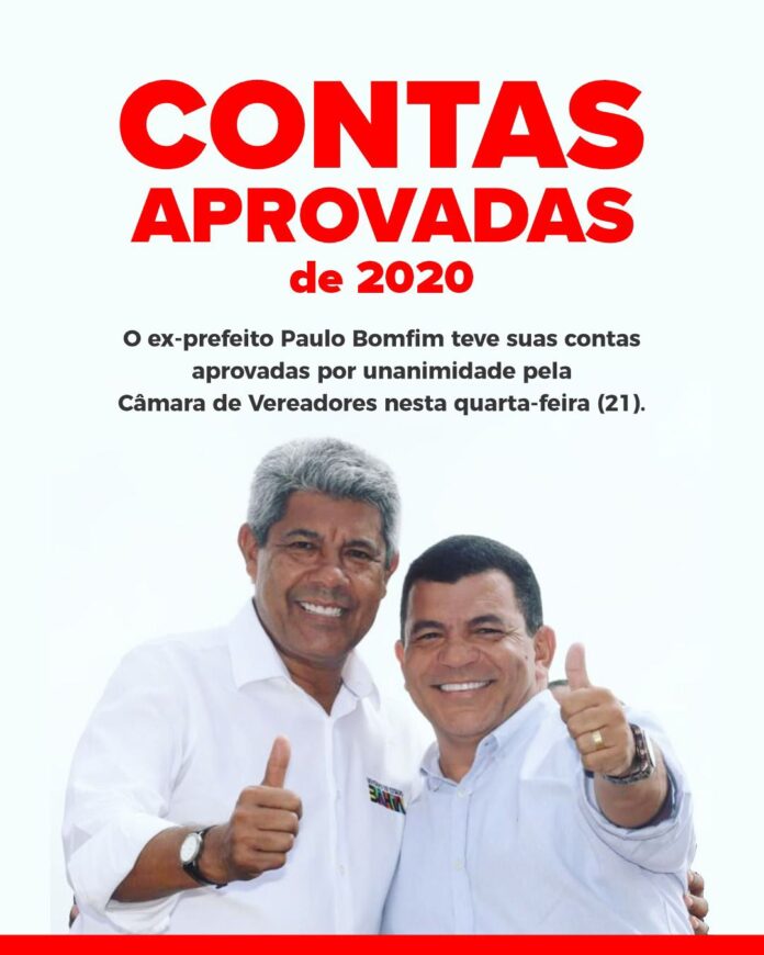 A Câmara de Vereadores de Juazeiro aprovou, por unanimidade, nesta quarta-feira (21/05), as contas referentes ao exercício de 2020 do ex-prefeito Paulo Bomfim (PT). A decisão reafirma a regularidade da gestão fiscal e administrativa durante seu mandato à frente do Executivo Municipal.
