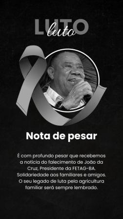 João da Cruz foi uma liderança destacada no movimento sindical rural, defendendo a agricultura familiar, reforma agrária e direitos sociais.Expressamos solidariedade aos familiares, amigos e militância sindical. Seu legado de luta e resistência será lembrado.”