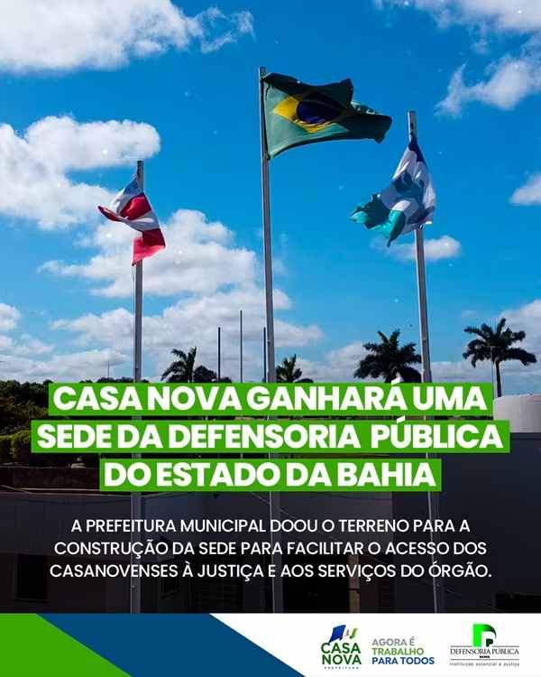 Casa Nova ganhará uma sede da Defensoria Pública do Estado da Bahia (DPE/BA). Na última sexta-feira (31/10), foi publicado o aviso de licitação que abrirá, no dia 18 de novembro, o processo para contratação da empresa responsável pela obra.