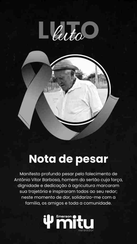 “É com profundo pesar que comunicamos o falecimento do diretor do Sindicato dos Trabalhadores Rurais Agricultores e Agricultoras Familiares, Antônio Vitor.